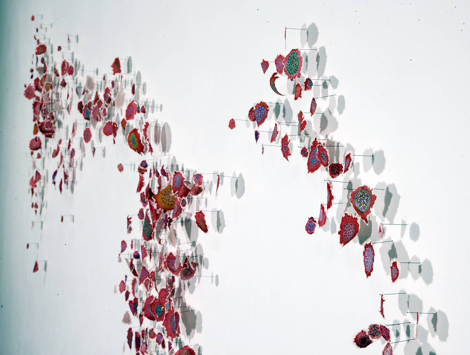 JillParisi-Ruby_Lichen_Archipelago_Detail_1 Published May 28, 2017 at 1572 × 1186 in Jill Parisi Detail 1: Ruby Lichen: Archipelago (2017) Installation of hand-colored etchings printed on handmade gampi and mitsumata tissue. Reactive to viewer proximity and airflow within a space. Attached to the wall with entomology pins or available as large framed installation. Share this: Share on X (Opens in new window) X Share on Facebook (Opens in new window) Facebook Share on Instagram (Opens in new window) Instagram